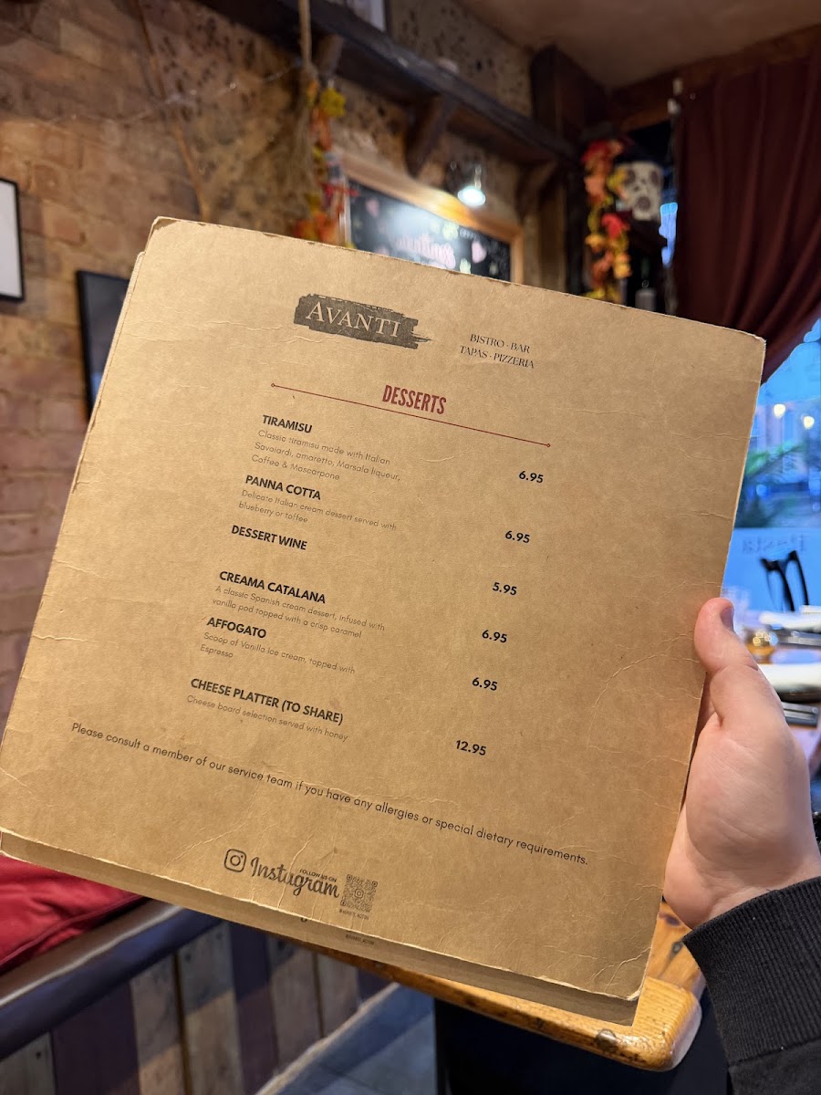 Avanti Acton’s menu offers a carefully curated selection that balances classic comfort with vibrant flavors. The Chicken and Chorizo Paella stands out as a hearty centerpiece, perfectly seasoned and brimming with tender chicken and spicy chorizo, making it a satisfying choice for those seeking a rich, traditional dish. For starters, the crisp and flavorful Arancini showcase a mastery of texture, with golden exteriors giving way to soft, cheesy interiors that highlight the restaurant’s attention to detail. Desserts maintain the same high standard: the creamy Rice Pudding delivers a gentle sweetness that comforts without overwhelming, while the Churro offers a crunchy, cinnamon-kissed treat that pairs beautifully with dipping sauces, rounding out the meal on a delightfully indulgent note. Overall, the menu at Avanti Acton manages to provide both familiar favorites and memorable twists, with each dish thoughtfully prepared and presented to leave a lasting impression.
